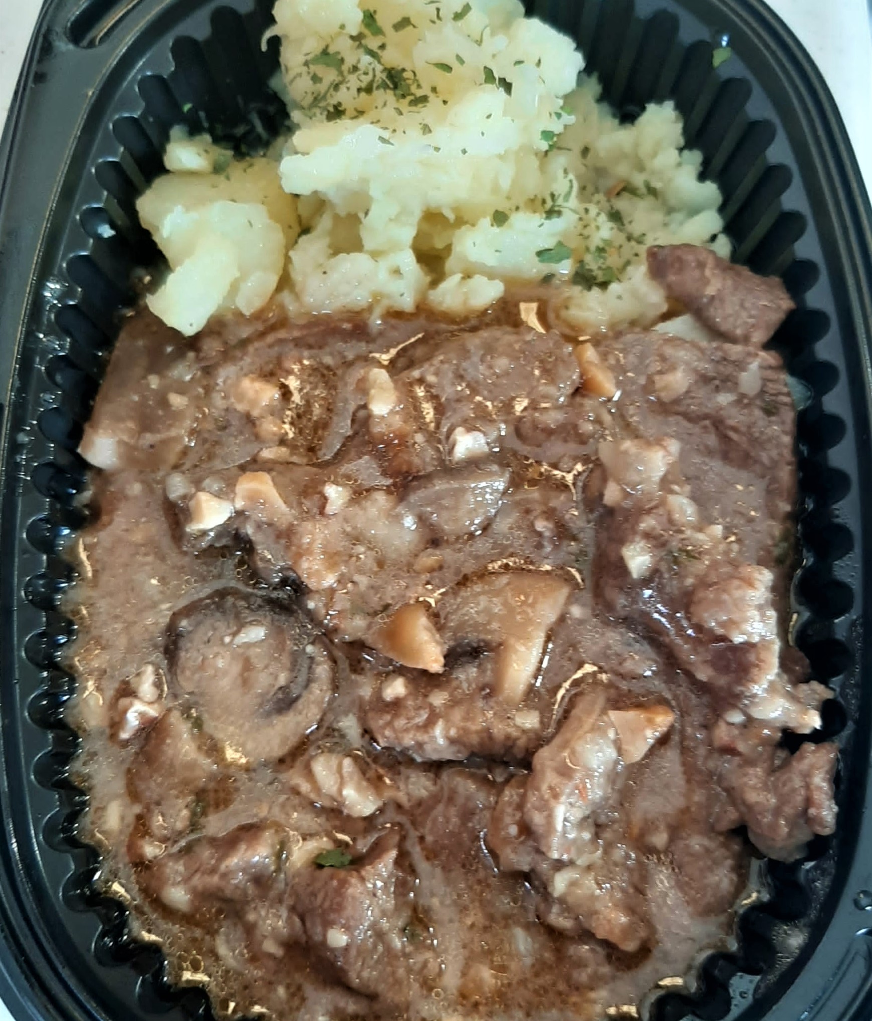 Filete de ternera, setas, harina de trigo, frutos secos, ajo, patatas, vino blanco, perejil, cebolla, zanahoria, sal, aceite de oliva.