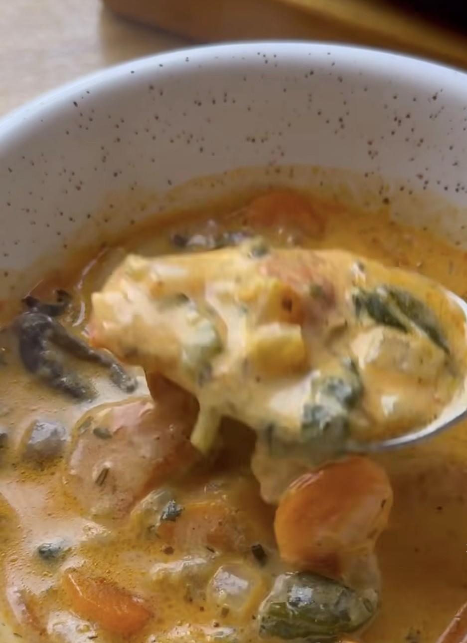 Zanahoria, cebolla, champiñón, cherry, pimiento, ajo, semillas provenzales, espinacas, nata, pimentón y aceite.«Este plato puede contener otros alérgenos, ya que, todos nuestros platos están cocinados artesanalmente en el mismo obrador»